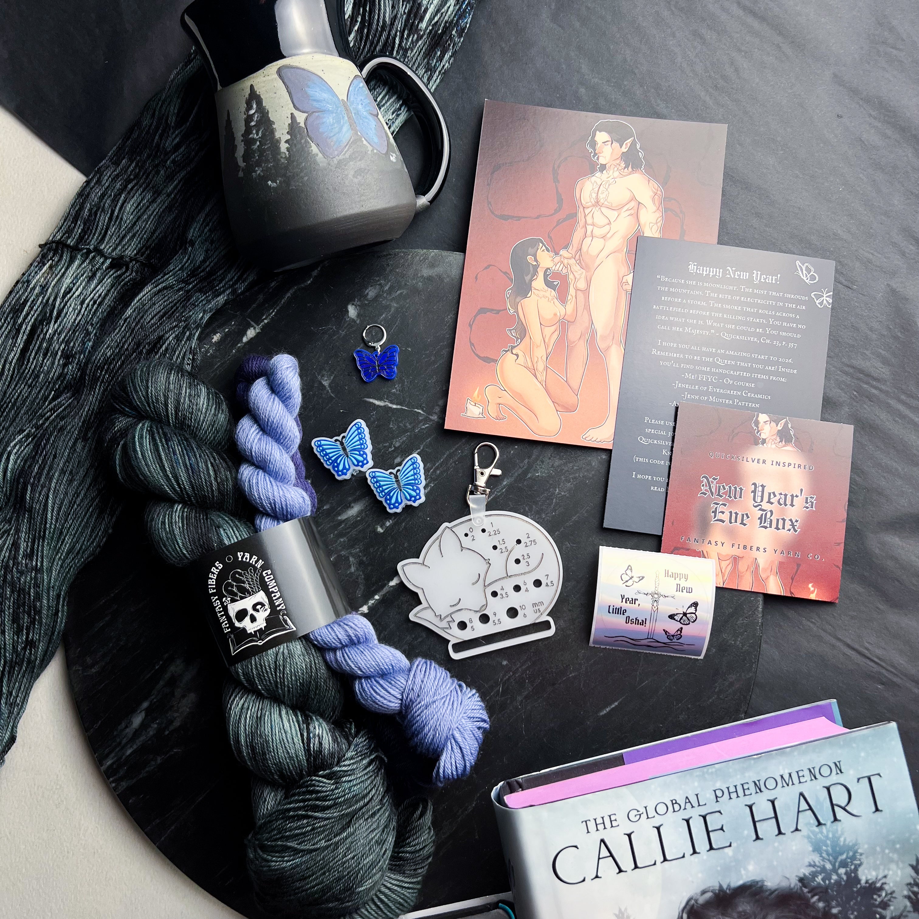 All fantasy book series-inspired items are handmade/designed by women-owned small businesses. Goodies include: Bookmarks, Gauge Rulers, Progress Keeper Sets, Individual Progress Keepers, Needle Stoppers, 5x7" Prints, Mugs, Project Bags, and Stickers!