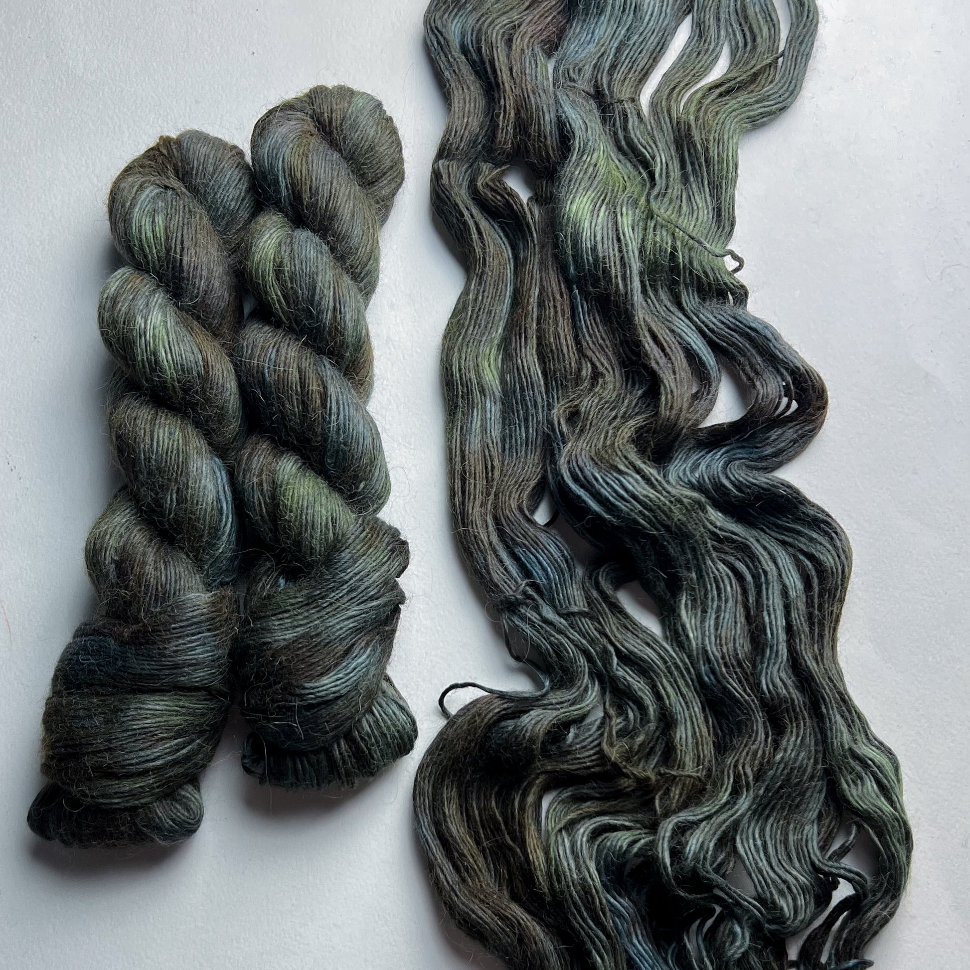 A variegated shire green, blue grey, and black with moody black speckle inspired by the home of our beloved Ent!