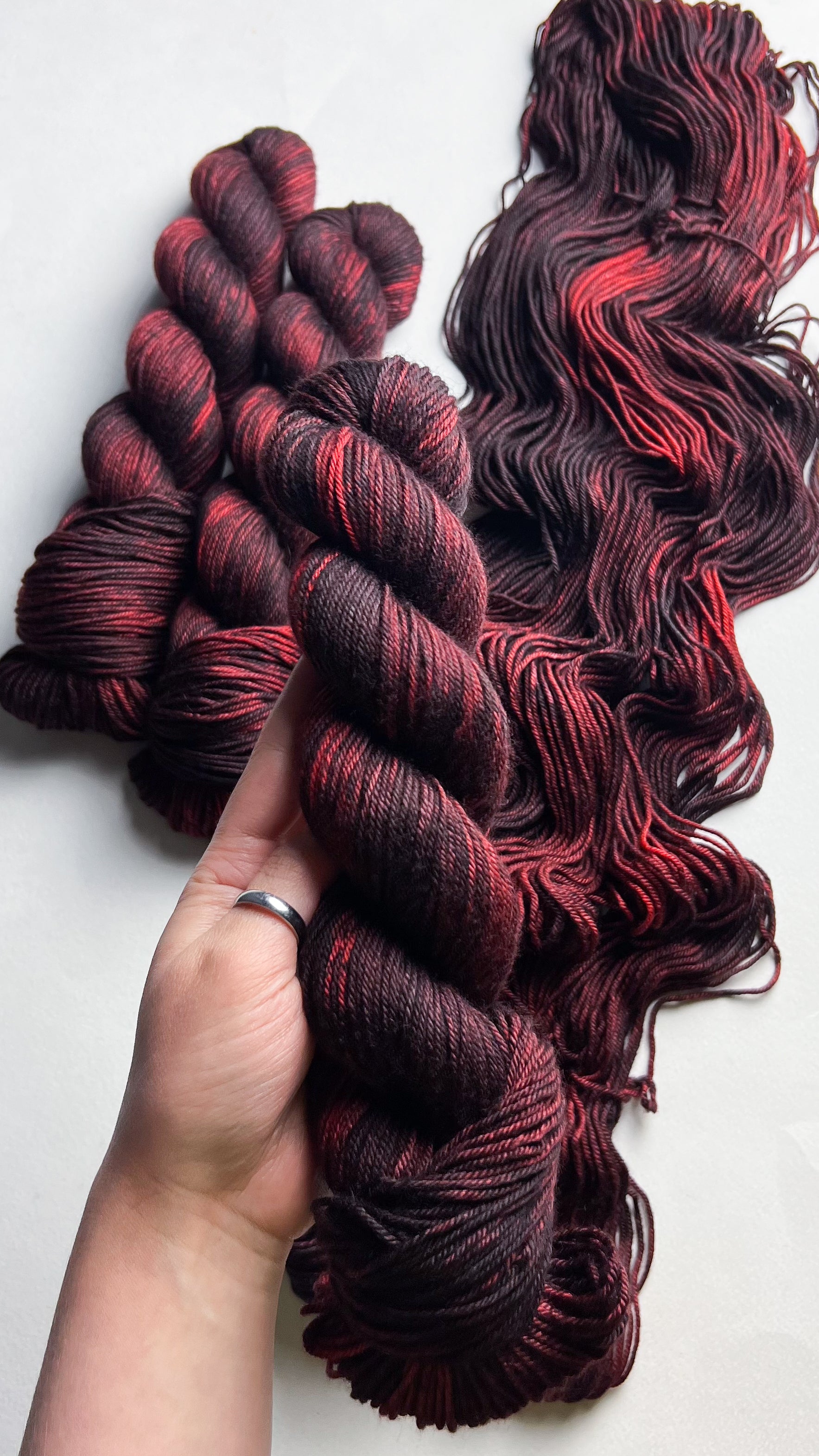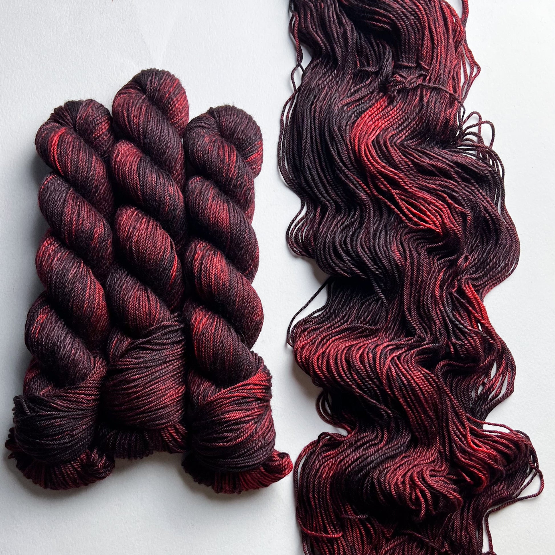 Debido a la naturaleza del hilo teñido a mano, los colores pueden variar levemente por madeja. Para proyectos más grandes que utilicen más de una madeja de hilo por combinación de colores, recomendamos encarecidamente alternar madejas a lo largo del proyecto para evitar transiciones de tono no deseadas. Hemos hecho todo lo posible para capturar el color del hilo con la mayor precisión posible; sin embargo, algunas combinaciones de colores cambian según la iluminación en la que se encuentren y los colores pueden variar de un monitor a otro.