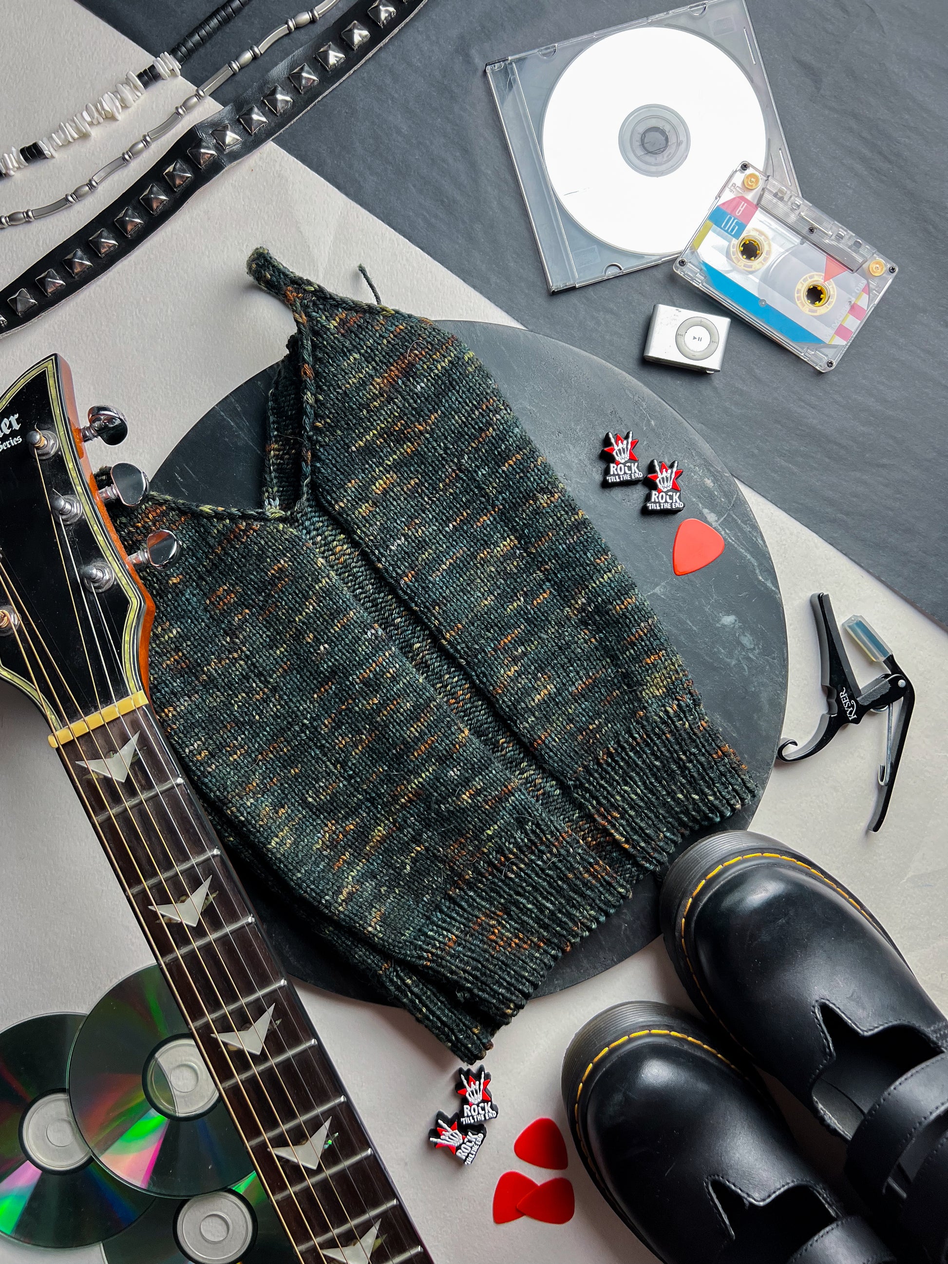 Our variegated for the Yarn Warped Tour dyer collab. A blend of rust, light green, and deep teal with a moody speckle modelled after the Saturday Night Wrist 2006 album cover. I was specifically inspired by the song "Cherry Waves" and it's dark romance sacrifice-everything-for-your-love vibes.