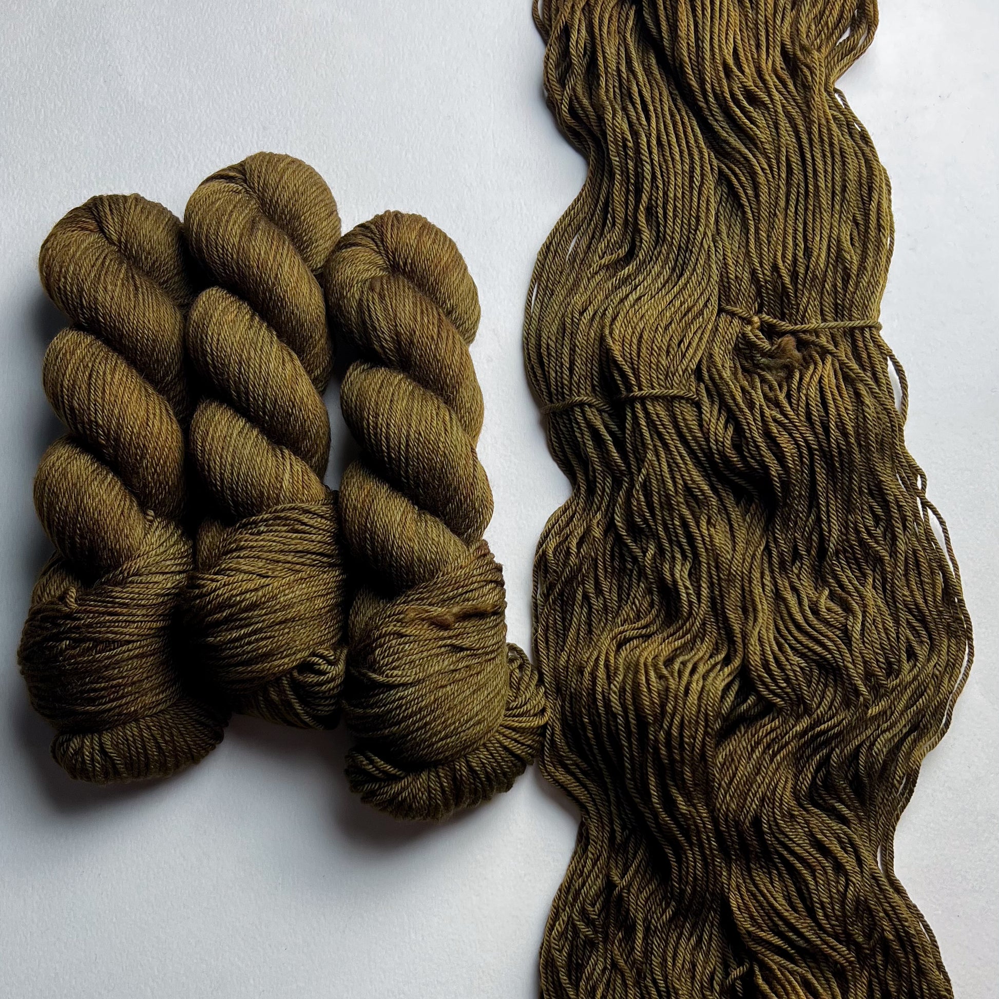 Debido a la naturaleza del hilo teñido a mano, los colores pueden variar levemente por madeja. Para proyectos más grandes que utilicen más de una madeja de hilo por combinación de colores, recomendamos encarecidamente alternar madejas a lo largo del proyecto para evitar transiciones de tono no deseadas. Hemos hecho todo lo posible para capturar el color del hilo con la mayor precisión posible; sin embargo, algunas combinaciones de colores cambian según la iluminación en la que se encuentren y los colores pueden variar de un monitor a otro.