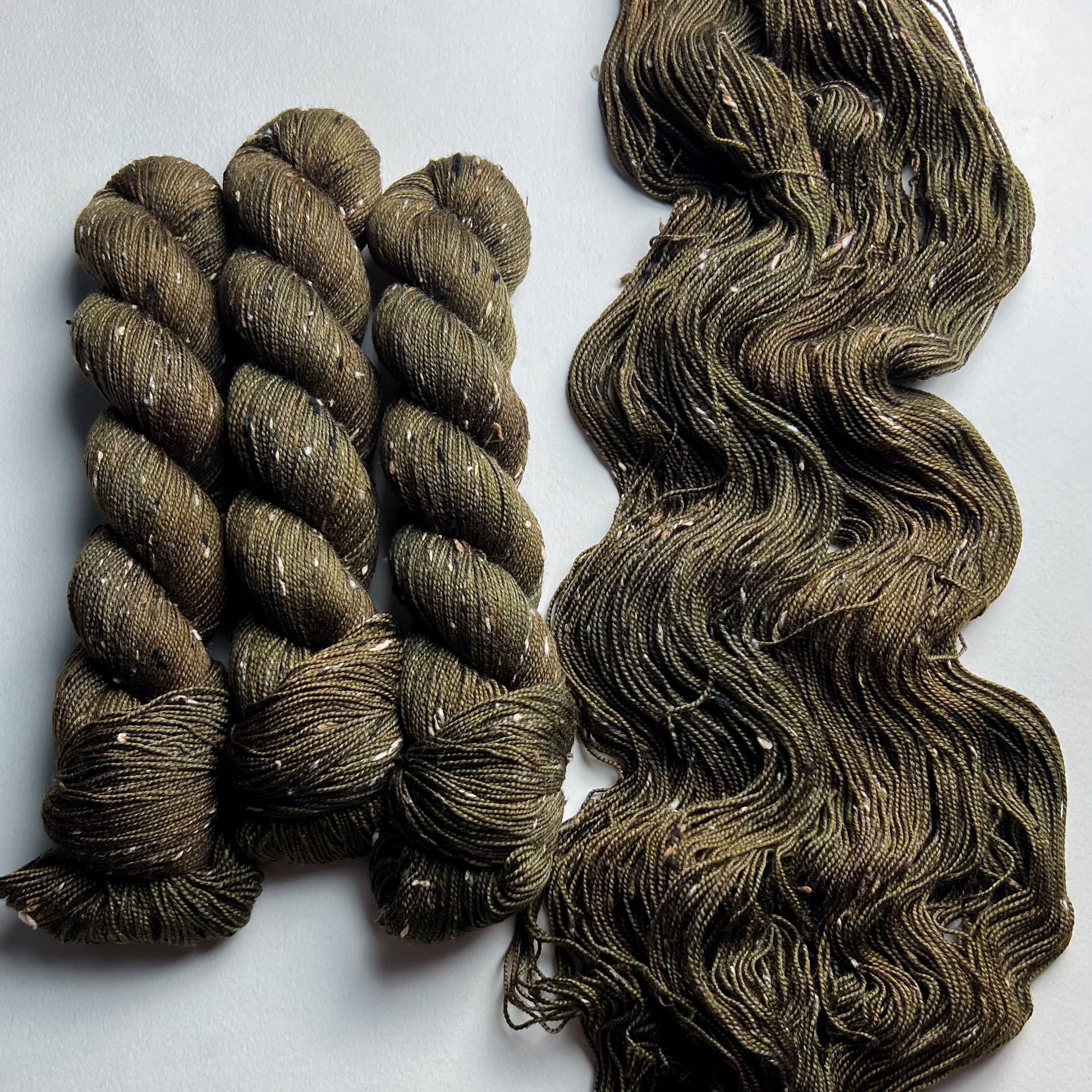 Debido a la naturaleza del hilo teñido a mano, los colores pueden variar levemente por madeja. Para proyectos más grandes que utilicen más de una madeja de hilo por combinación de colores, recomendamos encarecidamente alternar madejas a lo largo del proyecto para evitar transiciones de tono no deseadas. Hemos hecho todo lo posible para capturar el color del hilo con la mayor precisión posible; sin embargo, algunas combinaciones de colores cambian según la iluminación en la que se encuentren y los colores pueden variar de un monitor a otro.