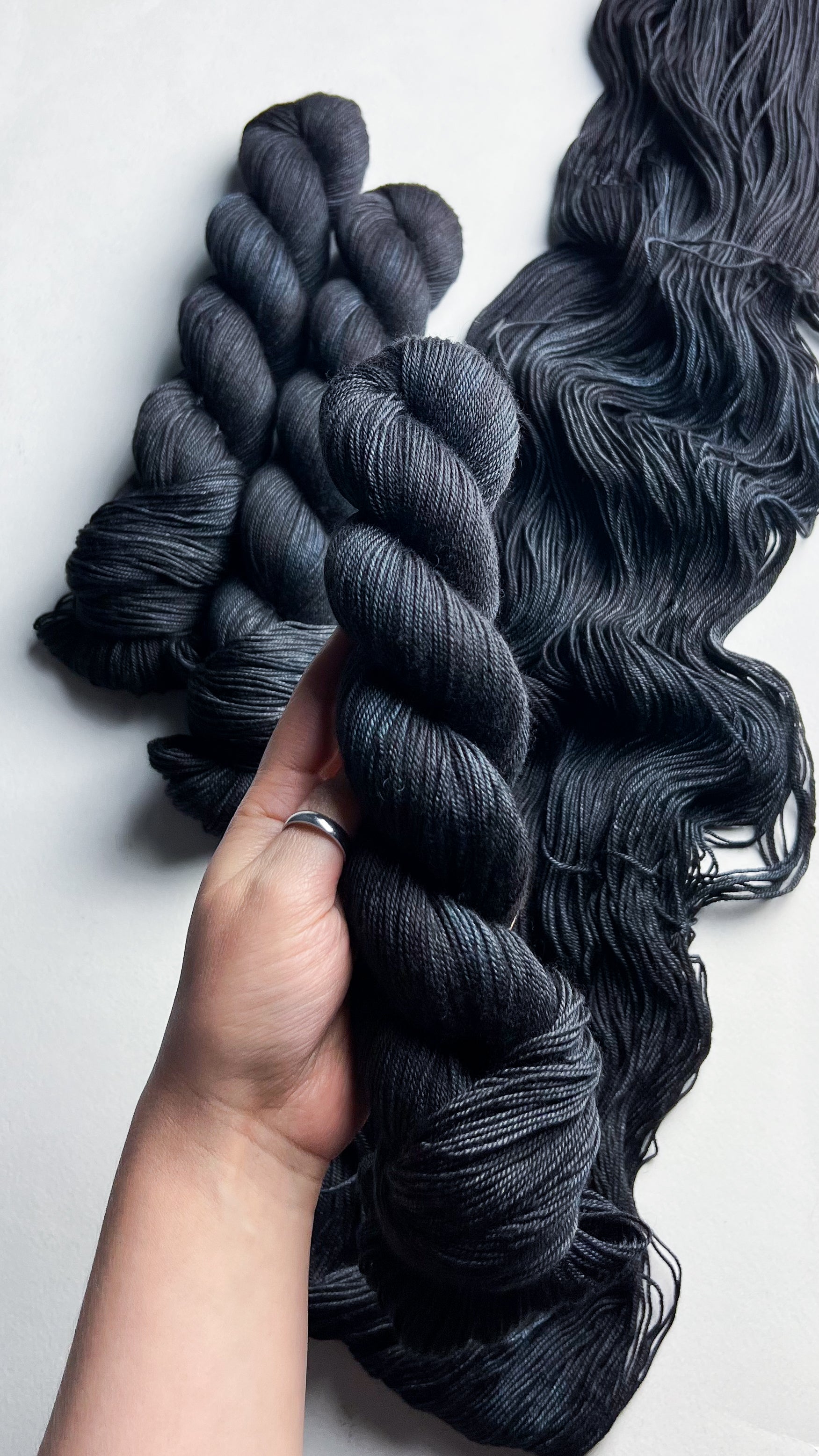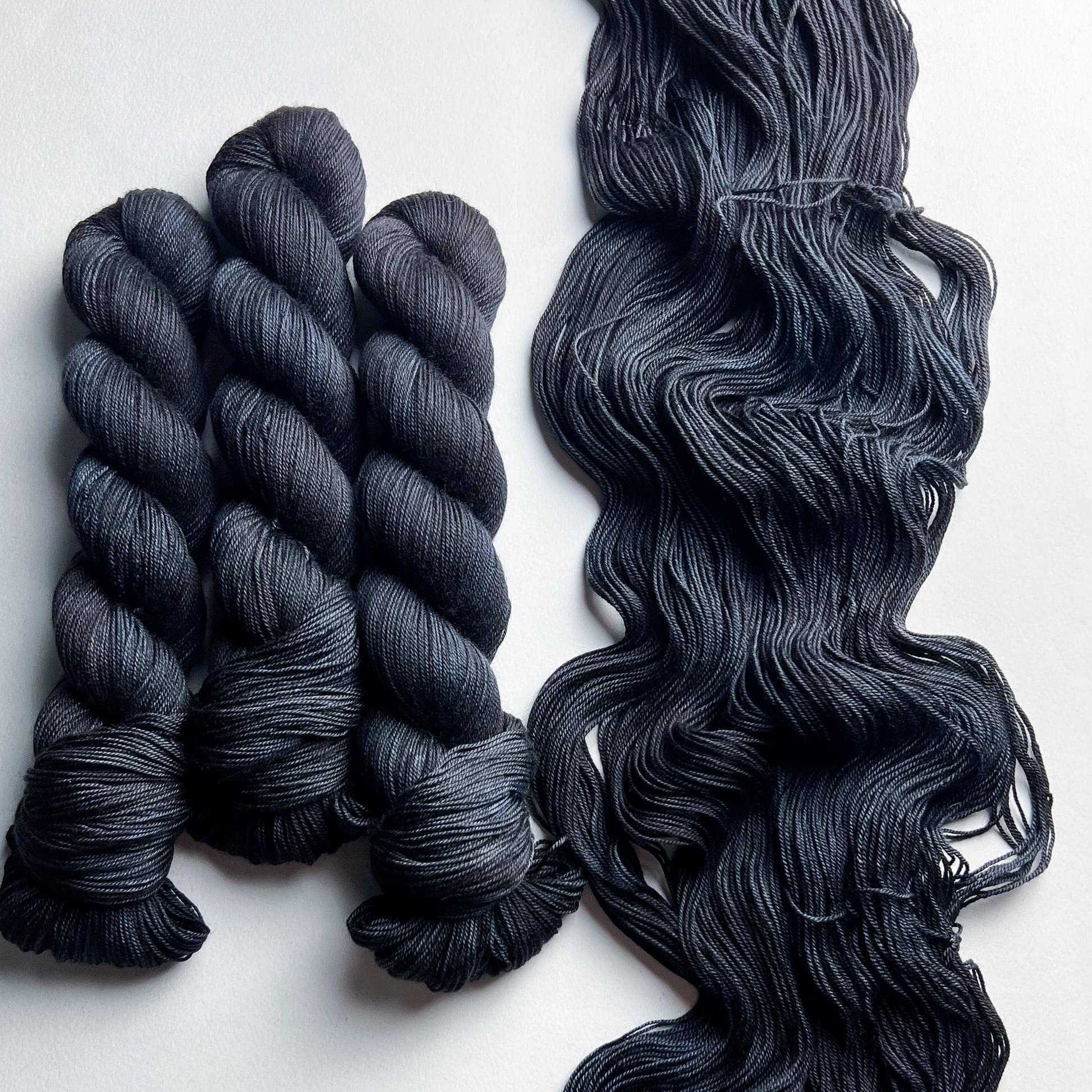 En raison de la nature du fil teint à la main, les couleurs peuvent varier légèrement d'un écheveau à l'autre. Pour les projets plus importants utilisant plus d'un écheveau de fil par coloris, nous recommandons fortement d'alterner les écheveaux tout au long du projet pour éviter les transitions de tons indésirables. Nous avons fait de notre mieux pour capturer la couleur du fil aussi précisément que possible ; cependant, certains coloris changent en fonction de l'éclairage dans lequel ils se trouvent, et les couleurs peuvent varier d'un écran à l'autre.