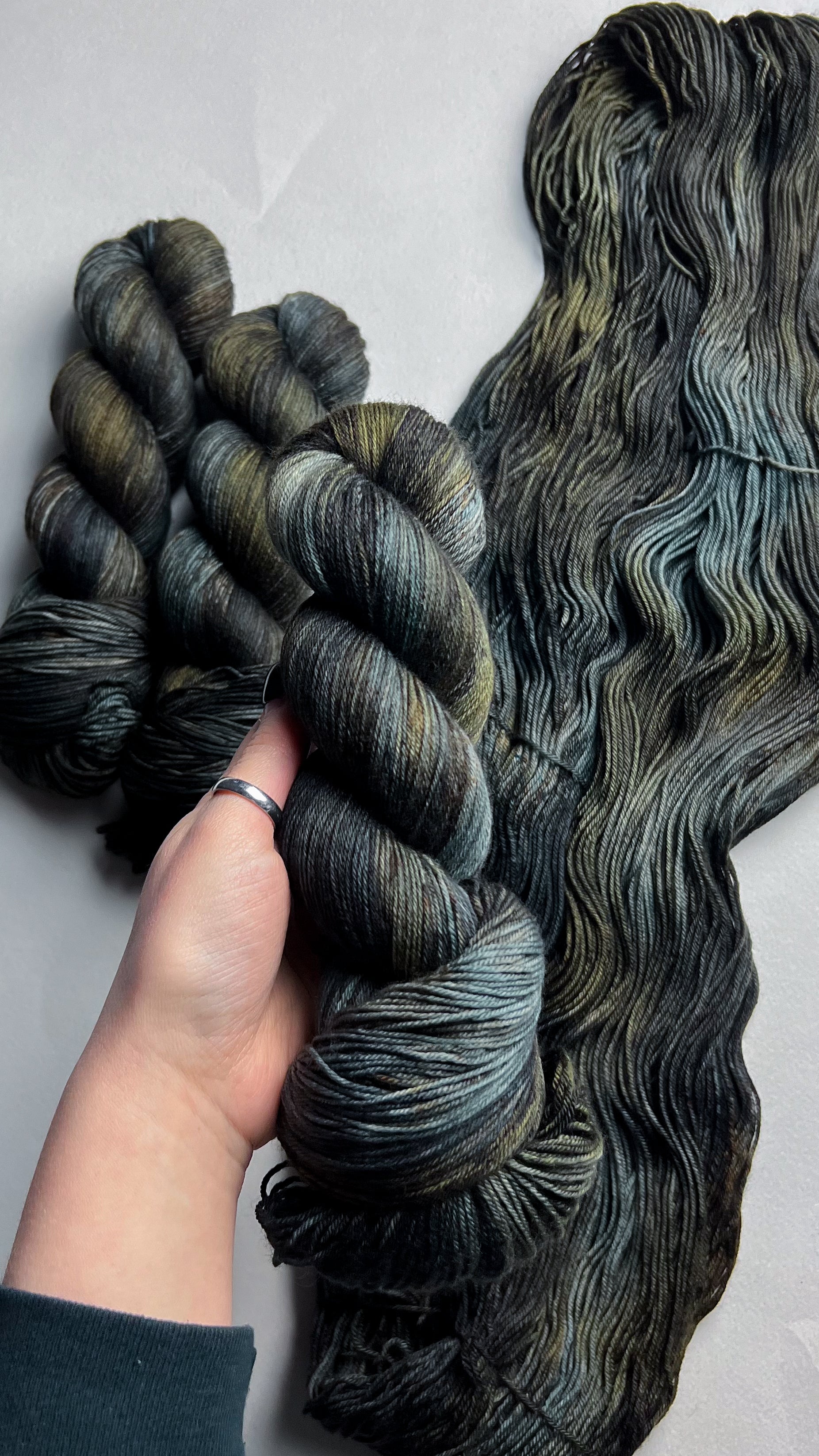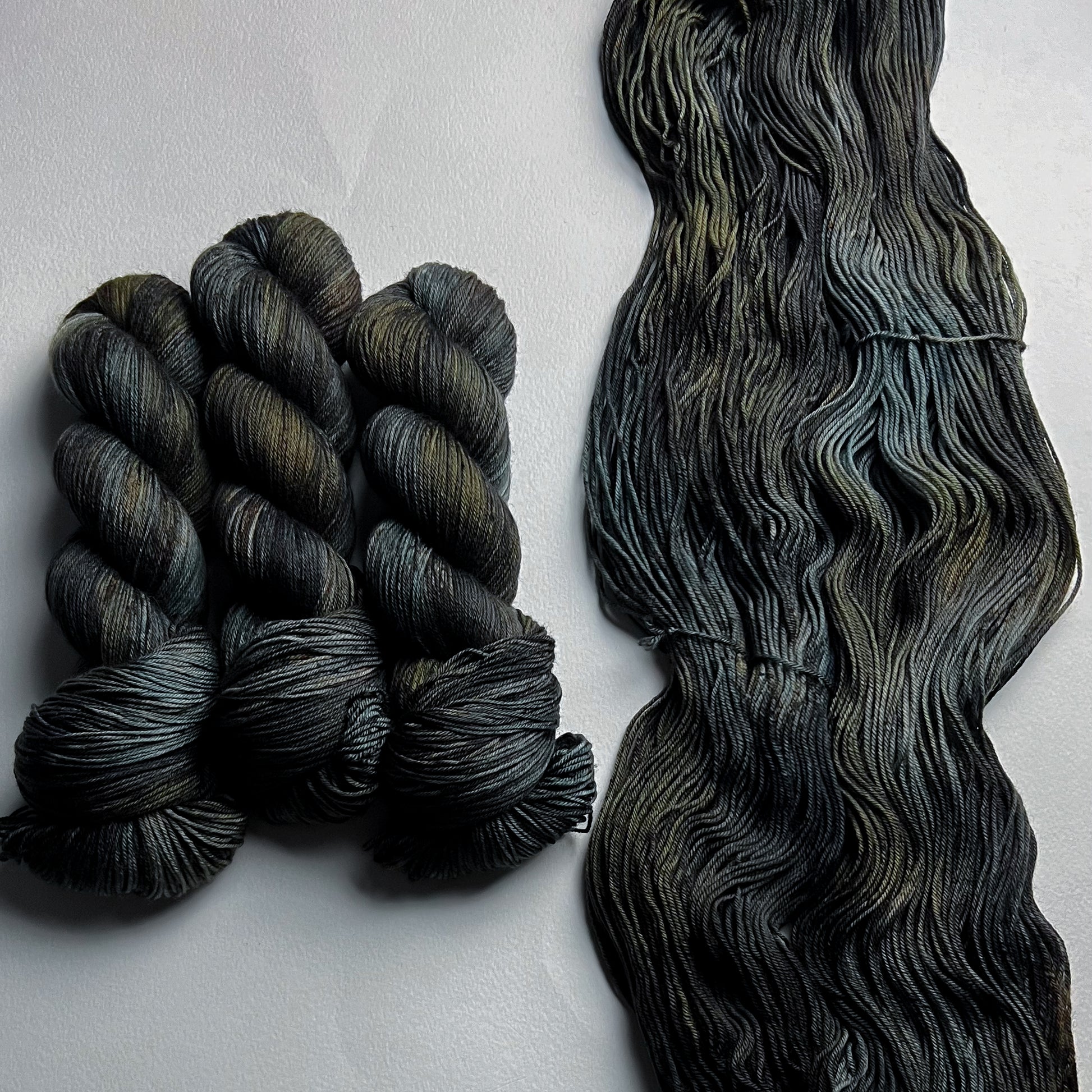 En raison de la nature du fil teint à la main, les couleurs peuvent varier légèrement d'un écheveau à l'autre. Pour les projets plus importants utilisant plus d'un écheveau de fil par coloris, nous recommandons fortement d'alterner les écheveaux tout au long du projet pour éviter les transitions de tons indésirables. Nous avons fait de notre mieux pour capturer la couleur du fil aussi précisément que possible ; cependant, certains coloris changent en fonction de l'éclairage dans lequel ils se trouvent, et les couleurs peuvent varier d'un écran à l'autre.