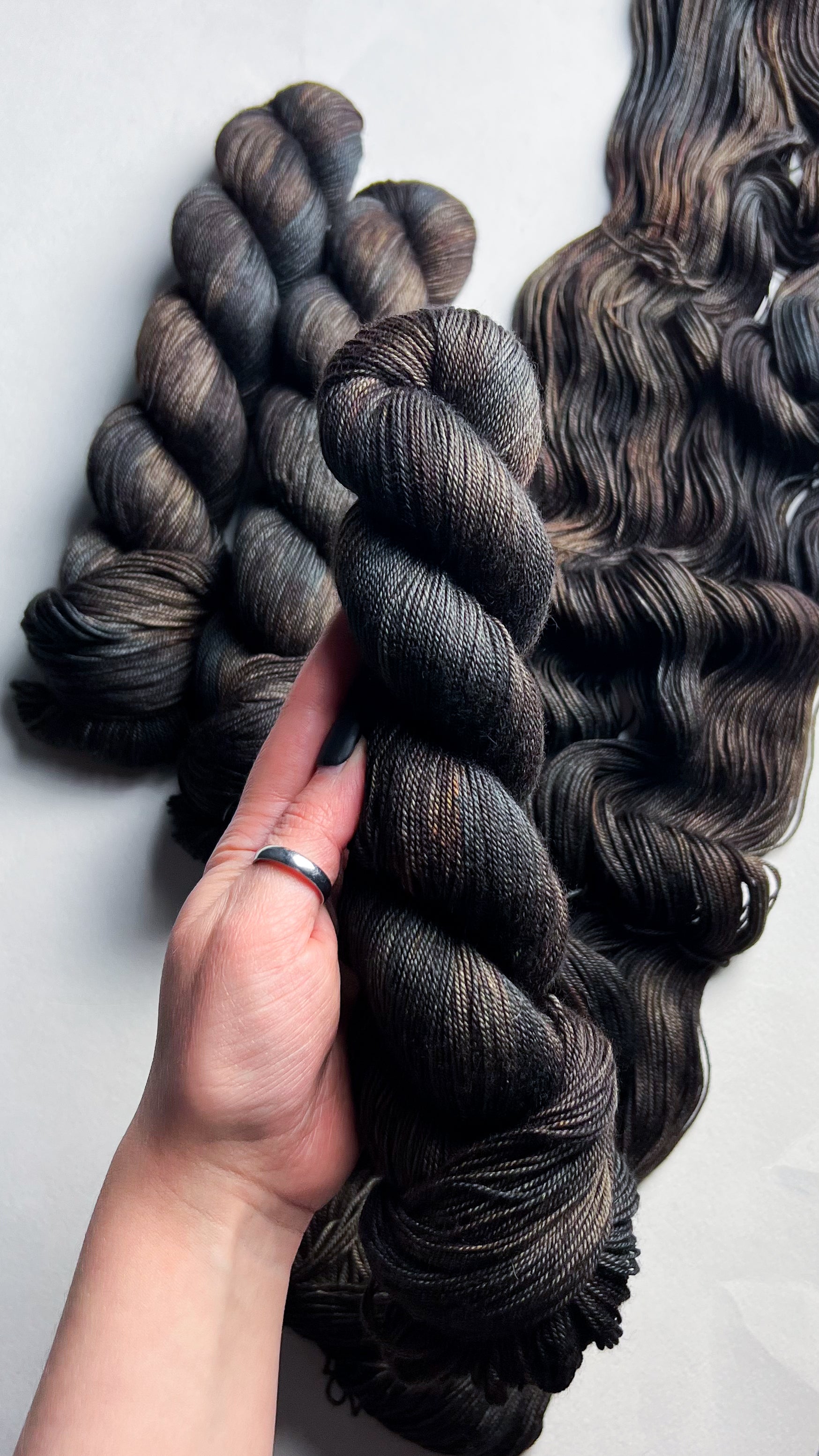Morally Grey Fingering 3-ply 60/20/20 SW Merino/Silk/Yak, 400yds/3.5oz, 366m/100g