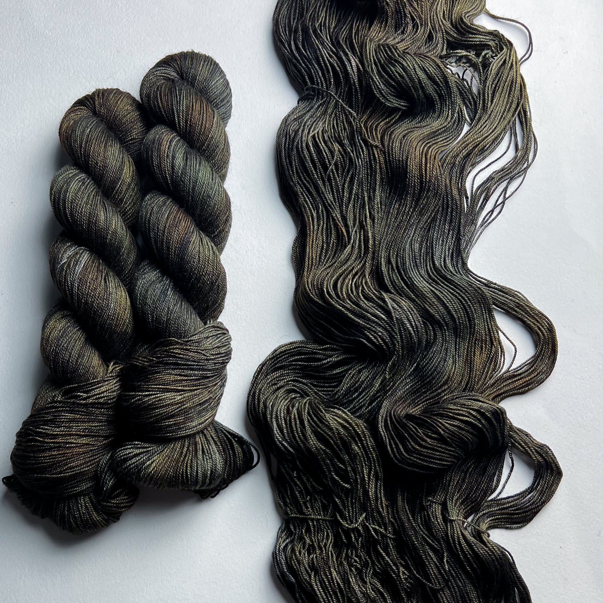 En raison de la nature du fil teint à la main, les couleurs peuvent varier légèrement d'un écheveau à l'autre. Pour les projets plus importants utilisant plus d'un écheveau de fil par coloris, nous recommandons fortement d'alterner les écheveaux tout au long du projet pour éviter les transitions de tons indésirables. Nous avons fait de notre mieux pour capturer la couleur du fil aussi précisément que possible ; cependant, certains coloris changent en fonction de l'éclairage dans lequel ils se trouvent, et les couleurs peuvent varier d'un écran à l'autre.