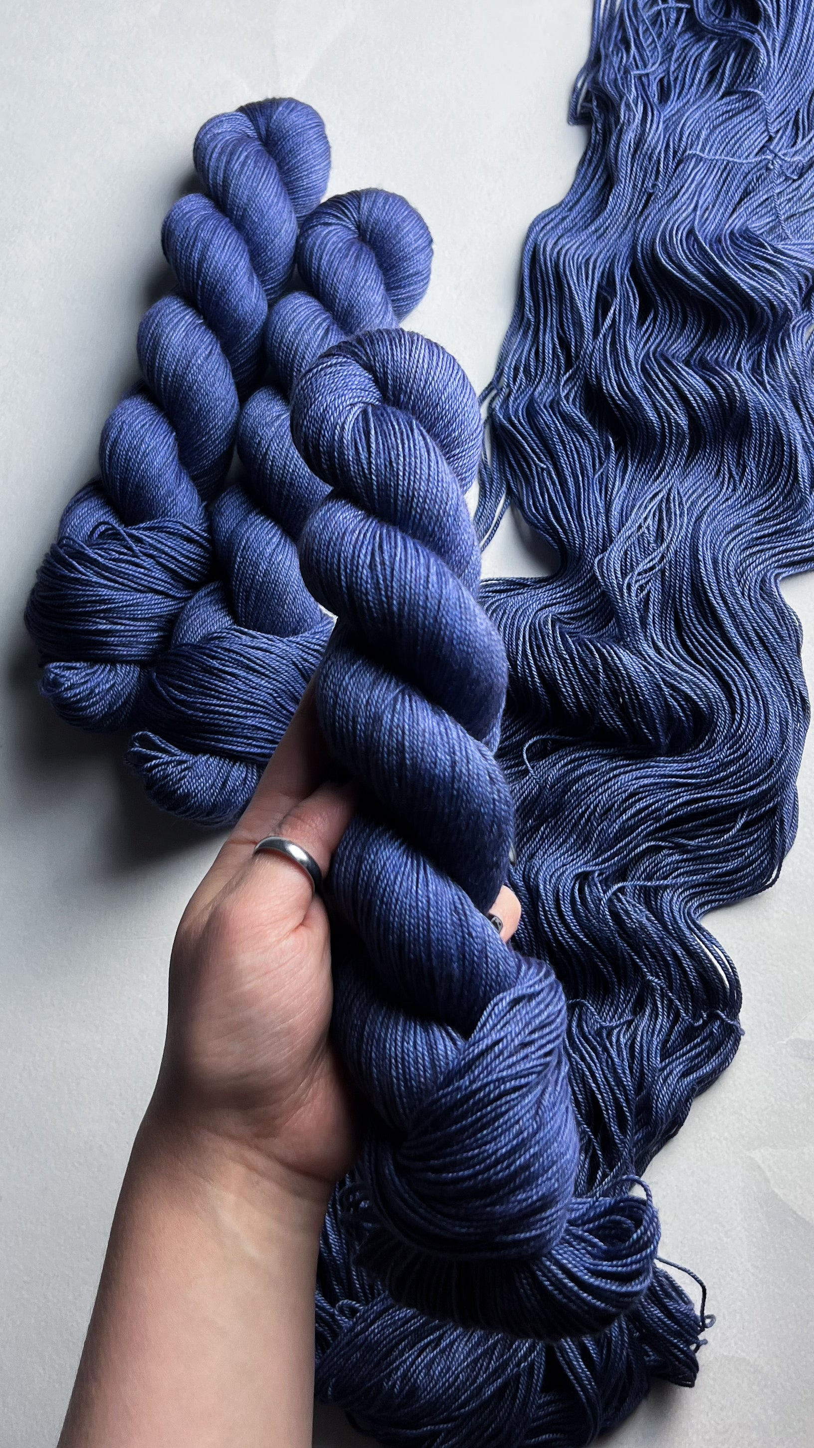 En raison de la nature du fil teint à la main, les couleurs peuvent varier légèrement d'un écheveau à l'autre. Pour les projets plus importants utilisant plus d'un écheveau de fil par coloris, nous recommandons fortement d'alterner les écheveaux tout au long du projet pour éviter les transitions de tons indésirables. Nous avons fait de notre mieux pour capturer la couleur du fil aussi précisément que possible ; cependant, certains coloris changent en fonction de l'éclairage dans lequel ils se trouvent, et les couleurs peuvent varier d'un écran à l'autre.