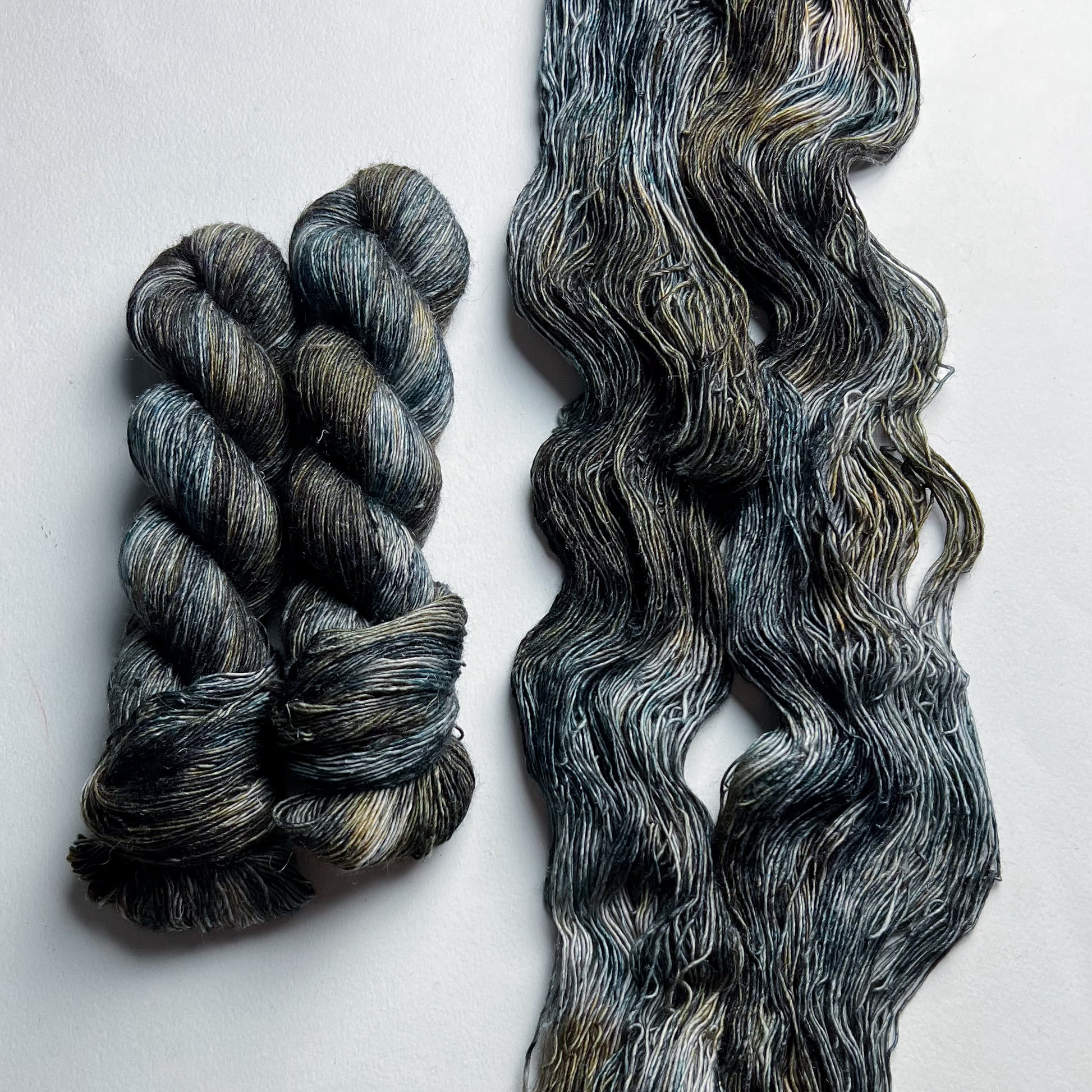 One Bed Fingering Single-ply 90/10 SW Mérinos/Lin, 393yds/3.5oz, 360m/100g