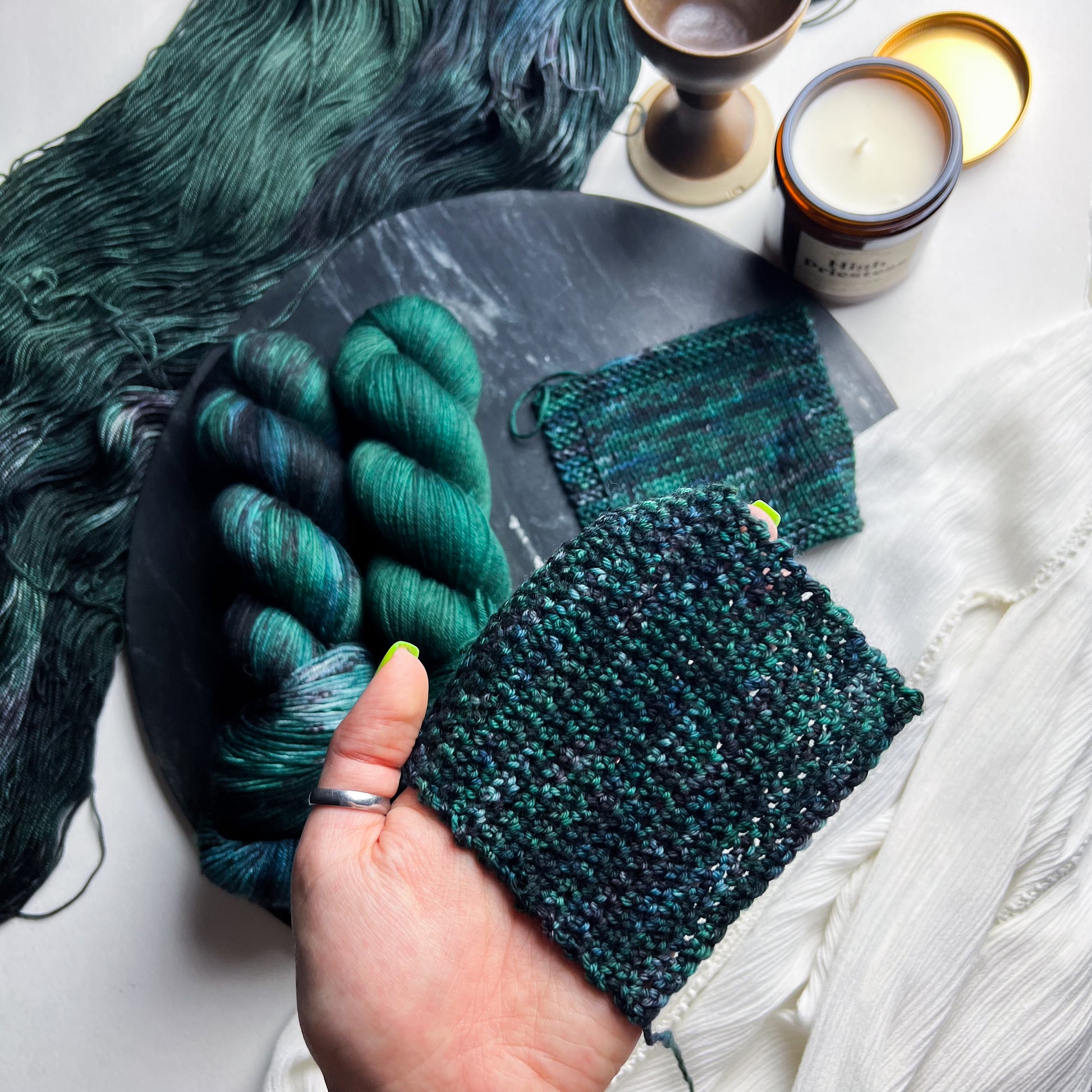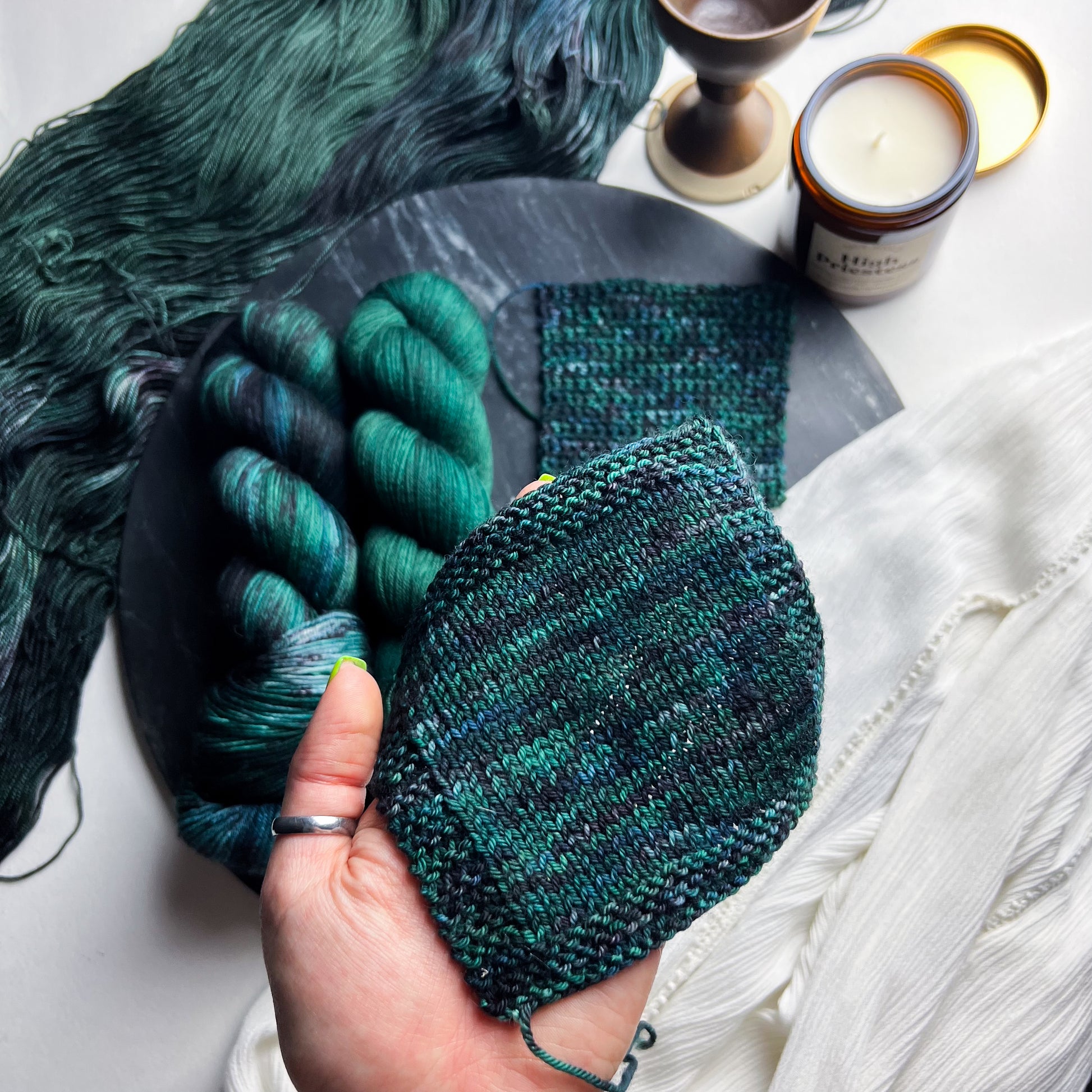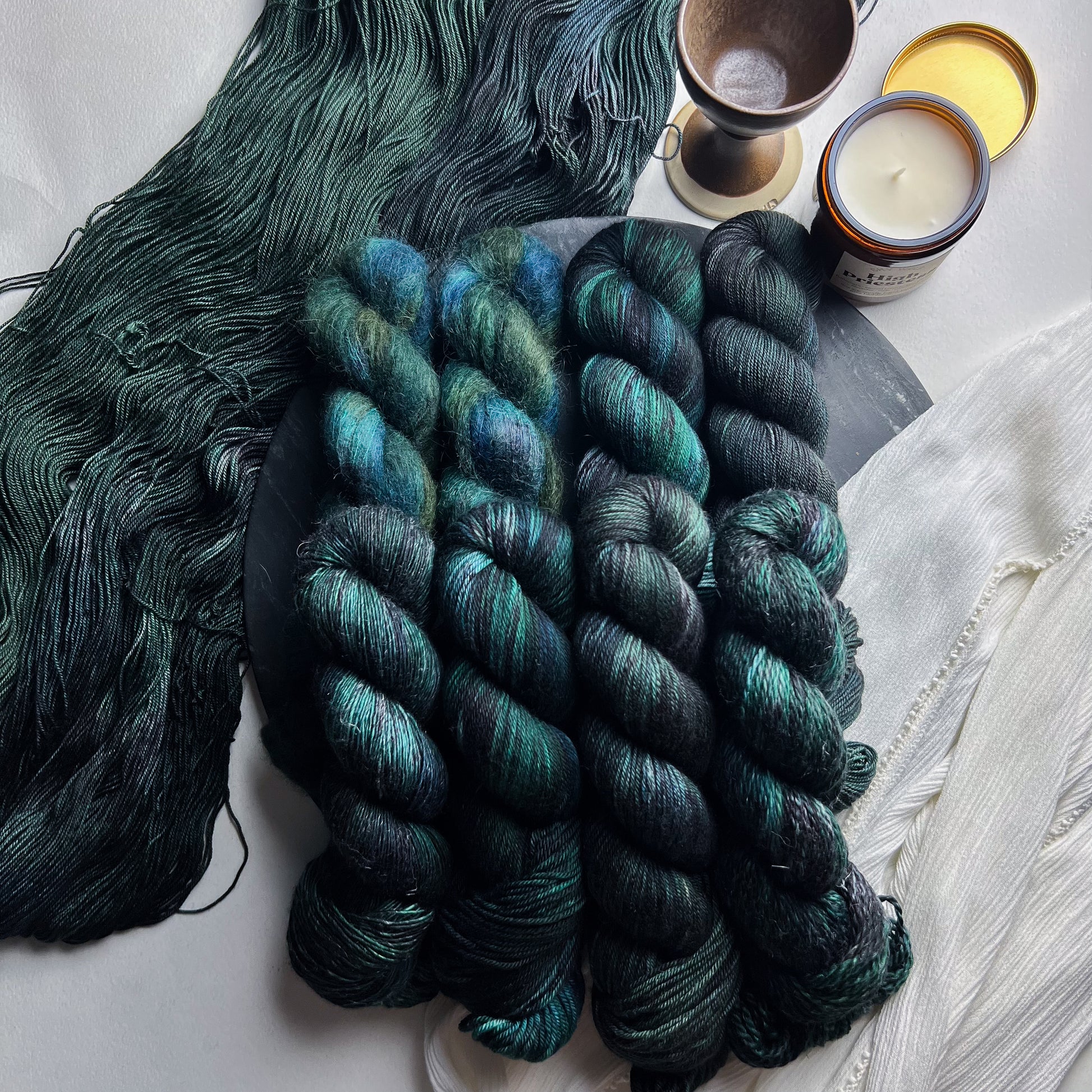 En raison de la nature du fil teint à la main, les couleurs peuvent varier légèrement d'un écheveau à l'autre. Pour les projets plus importants utilisant plus d'un écheveau de fil par coloris, nous recommandons fortement d'alterner les écheveaux tout au long du projet pour éviter les transitions de tons indésirables. Nous avons fait de notre mieux pour capturer la couleur du fil aussi précisément que possible ; cependant, certains coloris changent en fonction de l'éclairage dans lequel ils se trouvent, et les couleurs peuvent varier d'un écran à l'autre.
