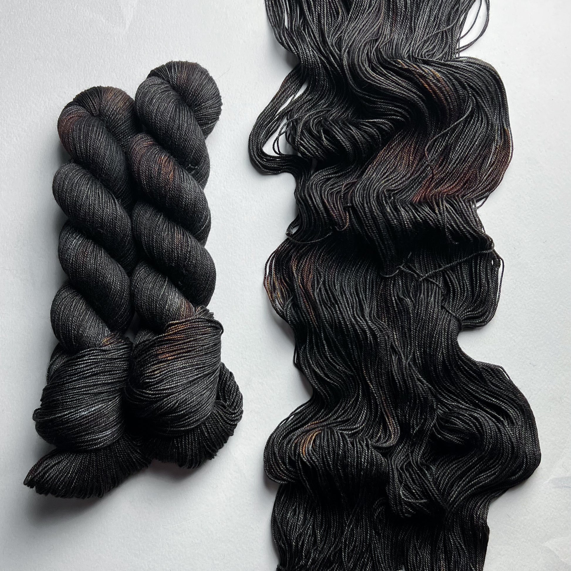 En raison de la nature du fil teint à la main, les couleurs peuvent varier légèrement d'un écheveau à l'autre. Pour les projets plus importants utilisant plus d'un écheveau de fil par coloris, nous recommandons fortement d'alterner les écheveaux tout au long du projet pour éviter les transitions de tons indésirables. Nous avons fait de notre mieux pour capturer la couleur du fil aussi précisément que possible ; cependant, certains coloris changent en fonction de l'éclairage dans lequel ils se trouvent, et les couleurs peuvent varier d'un écran à l'autre.