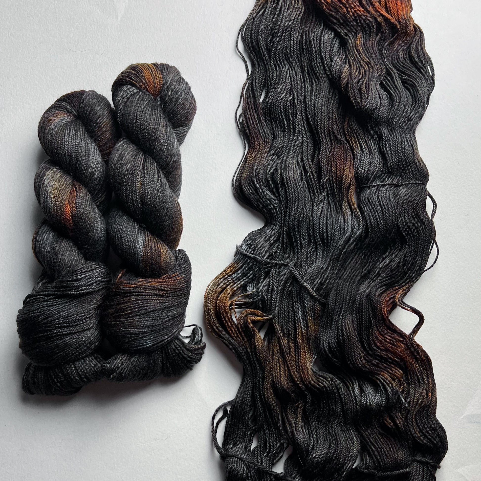 En raison de la nature du fil teint à la main, les couleurs peuvent varier légèrement d'un écheveau à l'autre. Pour les projets plus importants utilisant plus d'un écheveau de fil par coloris, nous recommandons fortement d'alterner les écheveaux tout au long du projet pour éviter les transitions de tons indésirables. Nous avons fait de notre mieux pour capturer la couleur du fil aussi précisément que possible ; cependant, certains coloris changent en fonction de l'éclairage dans lequel ils se trouvent, et les couleurs peuvent varier d'un écran à l'autre.