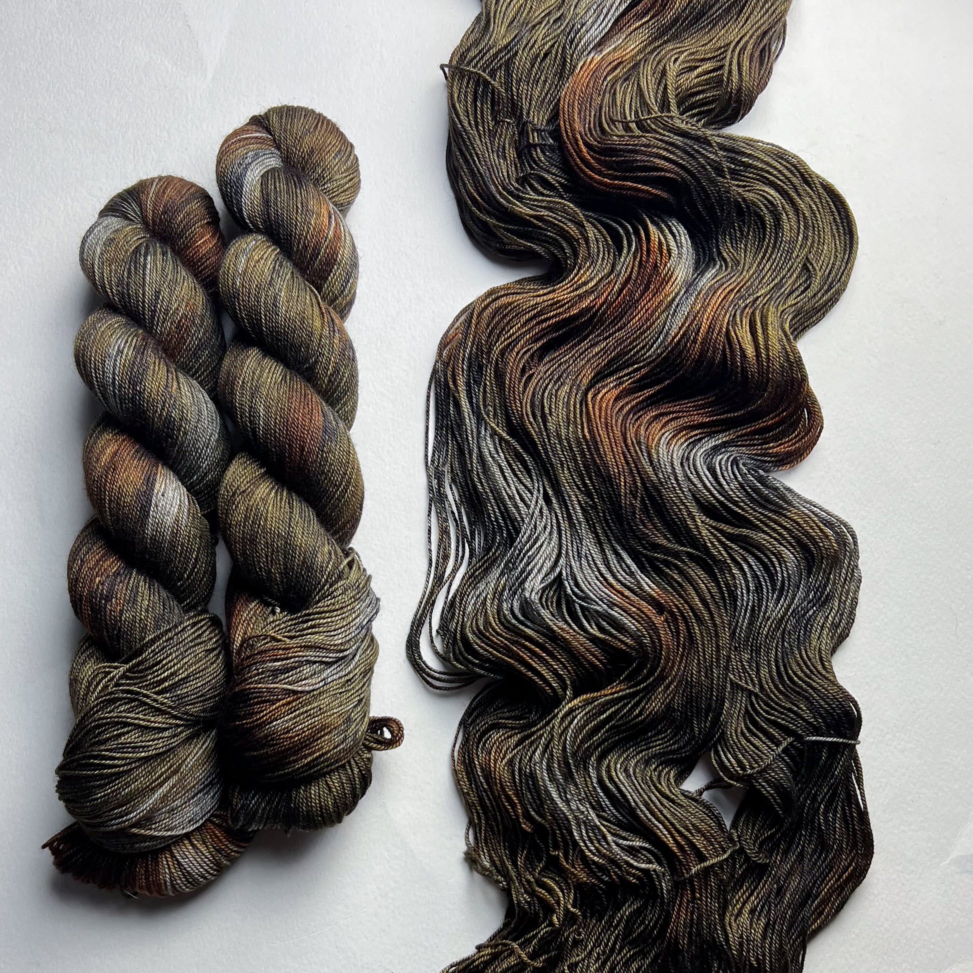 En raison de la nature du fil teint à la main, les couleurs peuvent varier légèrement d'un écheveau à l'autre. Pour les projets plus importants utilisant plus d'un écheveau de fil par coloris, nous recommandons fortement d'alterner les écheveaux tout au long du projet pour éviter les transitions de tons indésirables. Nous avons fait de notre mieux pour capturer la couleur du fil aussi précisément que possible ; cependant, certains coloris changent en fonction de l'éclairage dans lequel ils se trouvent, et les couleurs peuvent varier d'un écran à l'autre.