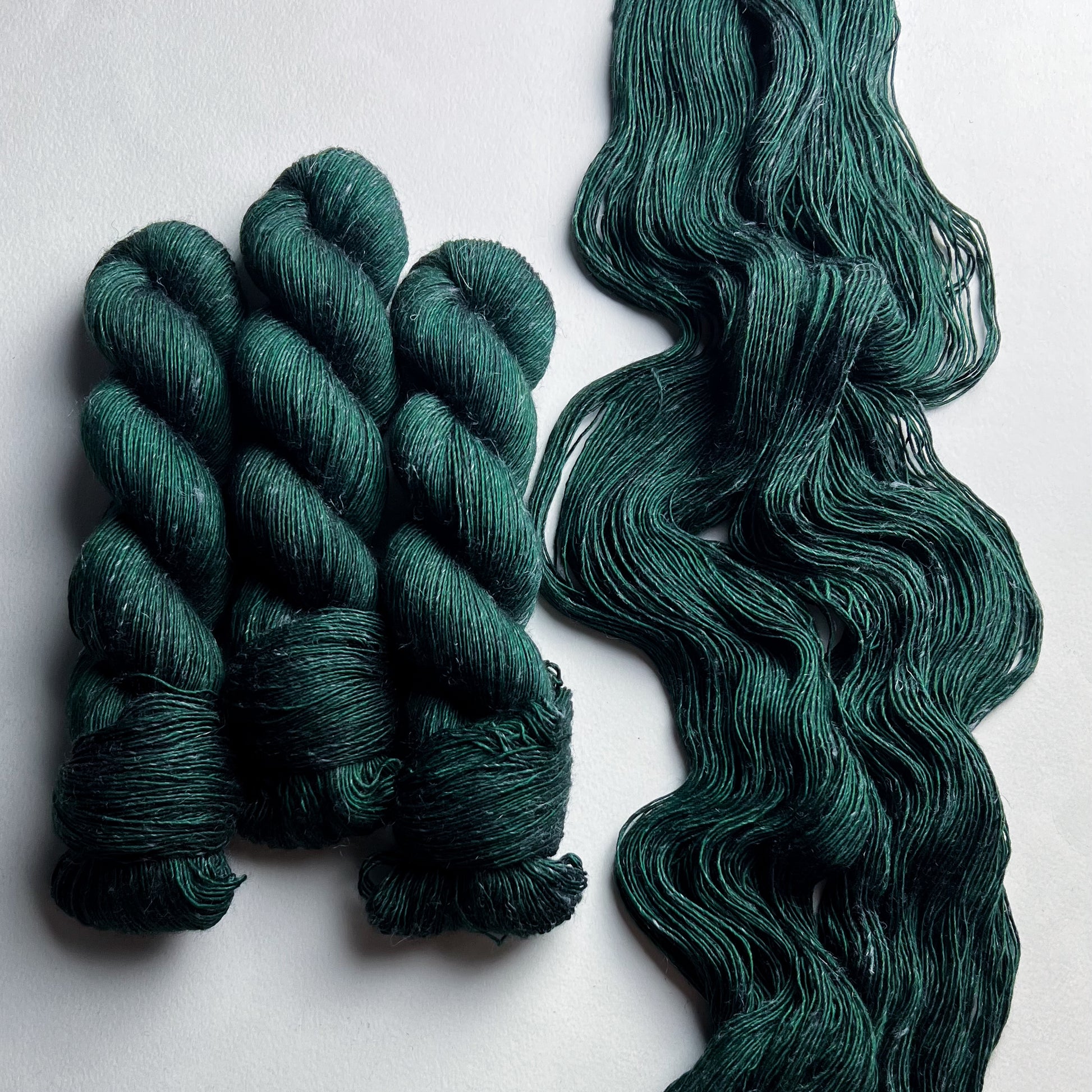 One Bed Fingering Single-ply 90/10 SW Merino/Linen, 393yds/3.5oz, 360m/100g