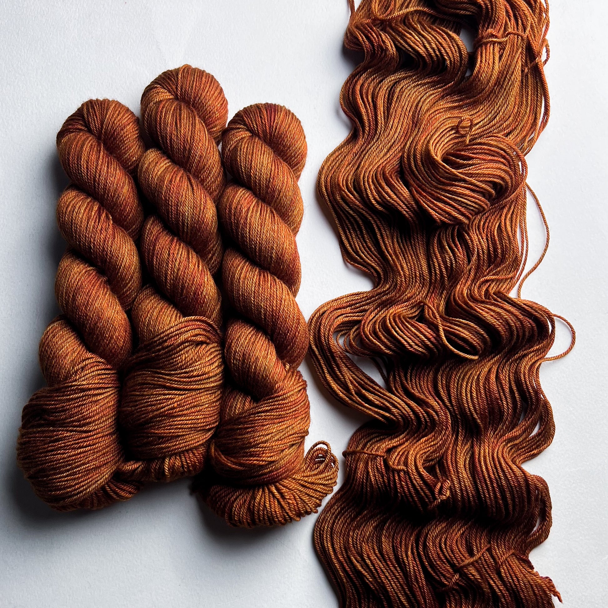 Please note: After dyeing the yarn, we throughly rinsed and soaked the yarn in a lanolin-based wool wash. However, slight bleeding may still occur the first few washes. If you are worried (especially with reds and purples), you can use a color catcher to help prevent bleeding onto the rest of your project.