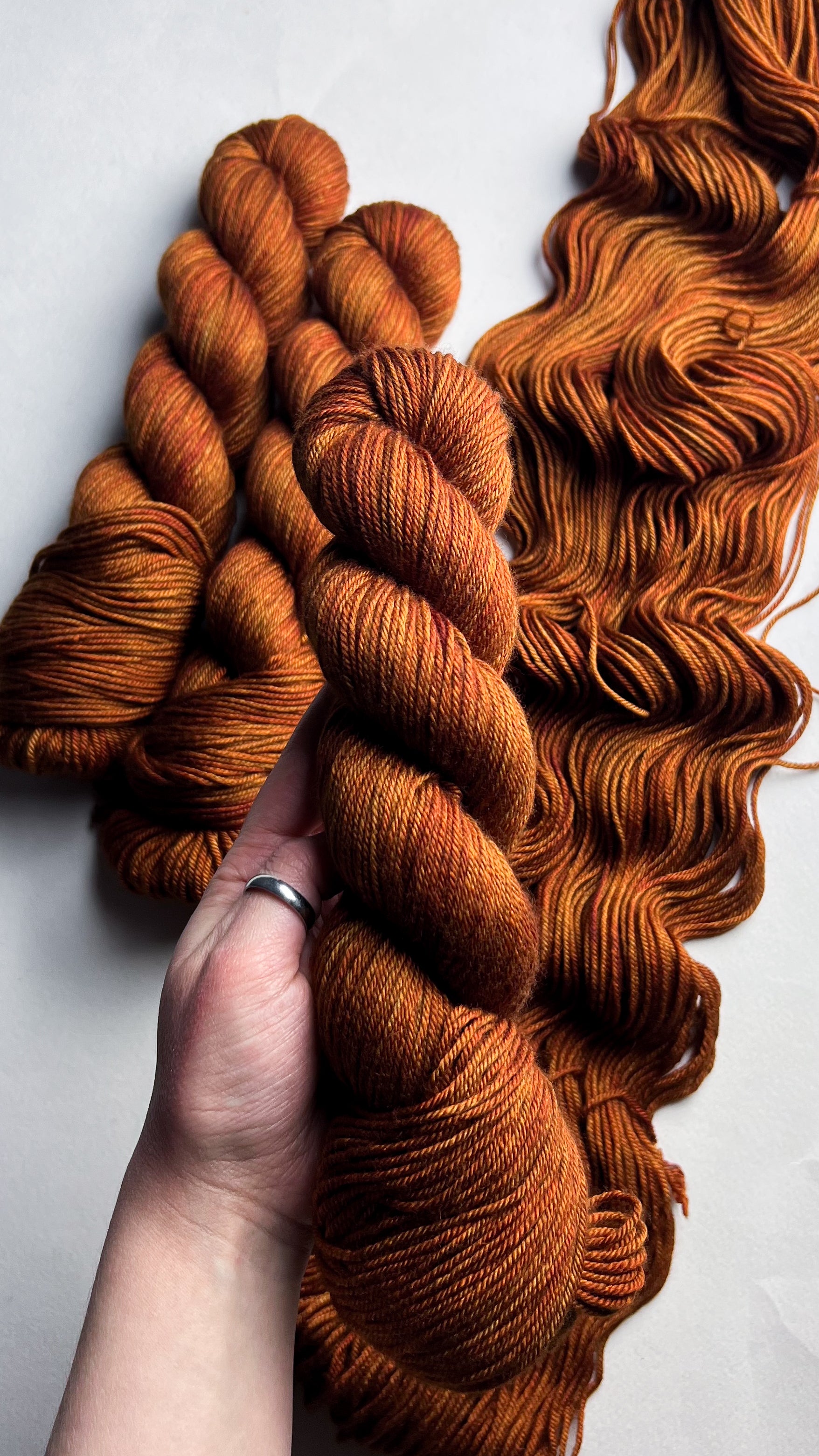 Due to the nature of hand-dyed yarn, colours may vary slightly per hank. For larger projects using more than one hank of yarn per colourway, we highly recommend alternating skeins throughout the project to avoid unwanted tone transitions. We have done our best to capture the colour of the yarn as accurately as possible; however, some colourways change depending on the lighting they are in, and colours may vary from monitor to monitor.