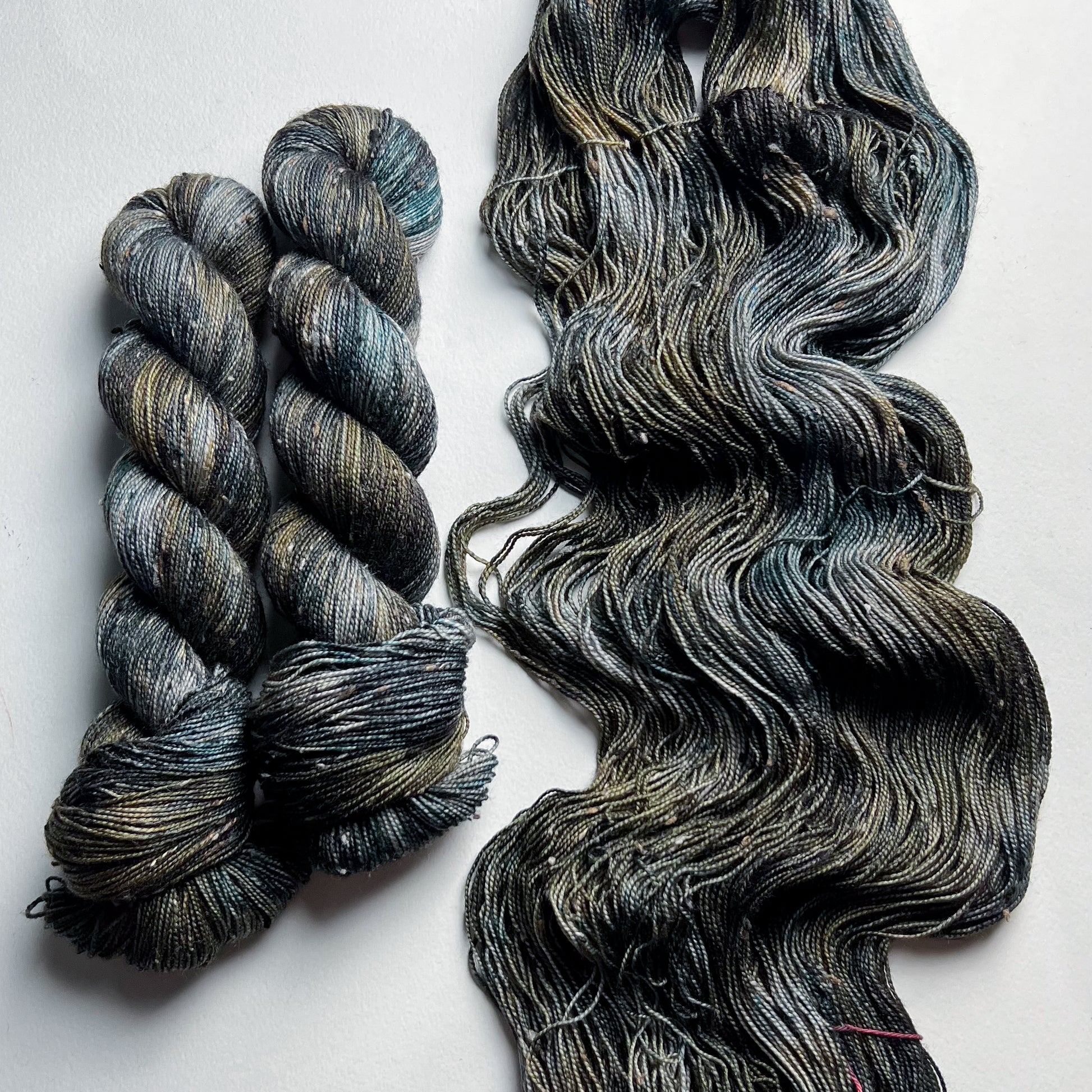 Smut Fingering 2-ply 85/15 SW Merino/Donegal Nep, 438yds/3.5oz, 400m/100g